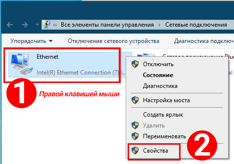 1.5. Нажмите ПРАВОЙ клавишей мыши на иконку Ethernet