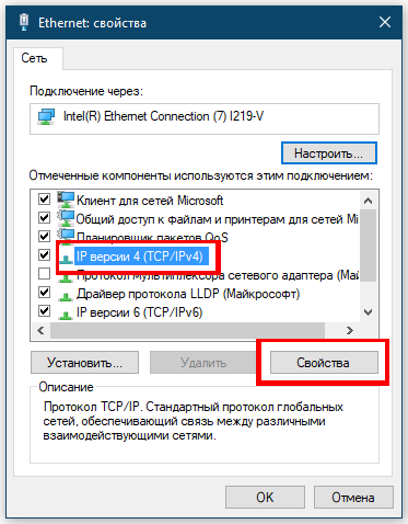 1.6. В окне выберите IP версии 4 (TCP/IPv4)